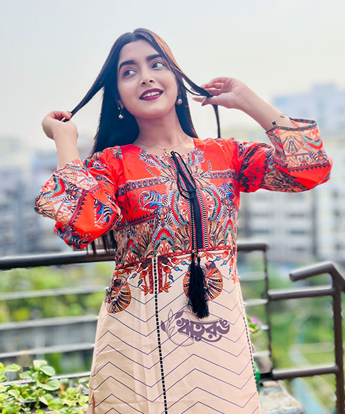 Stylish Digital Printed Co-Ord's Two Piece (Orange+Tarcel)